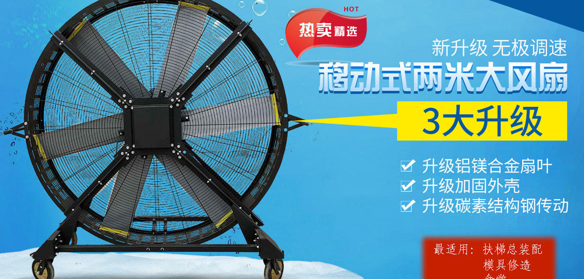 可移動大風(fēng)扇直徑可達2.4米(8ft),